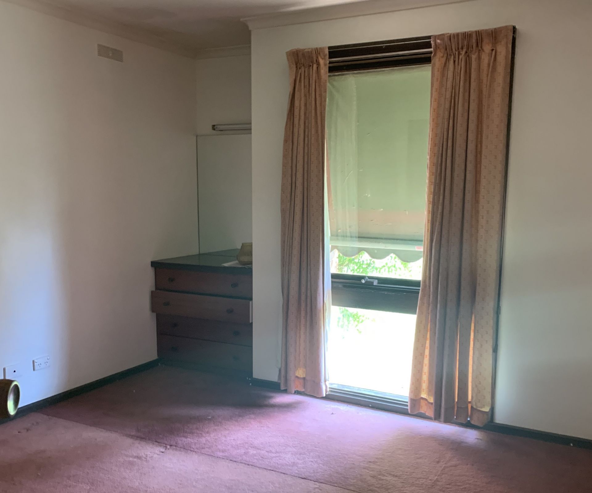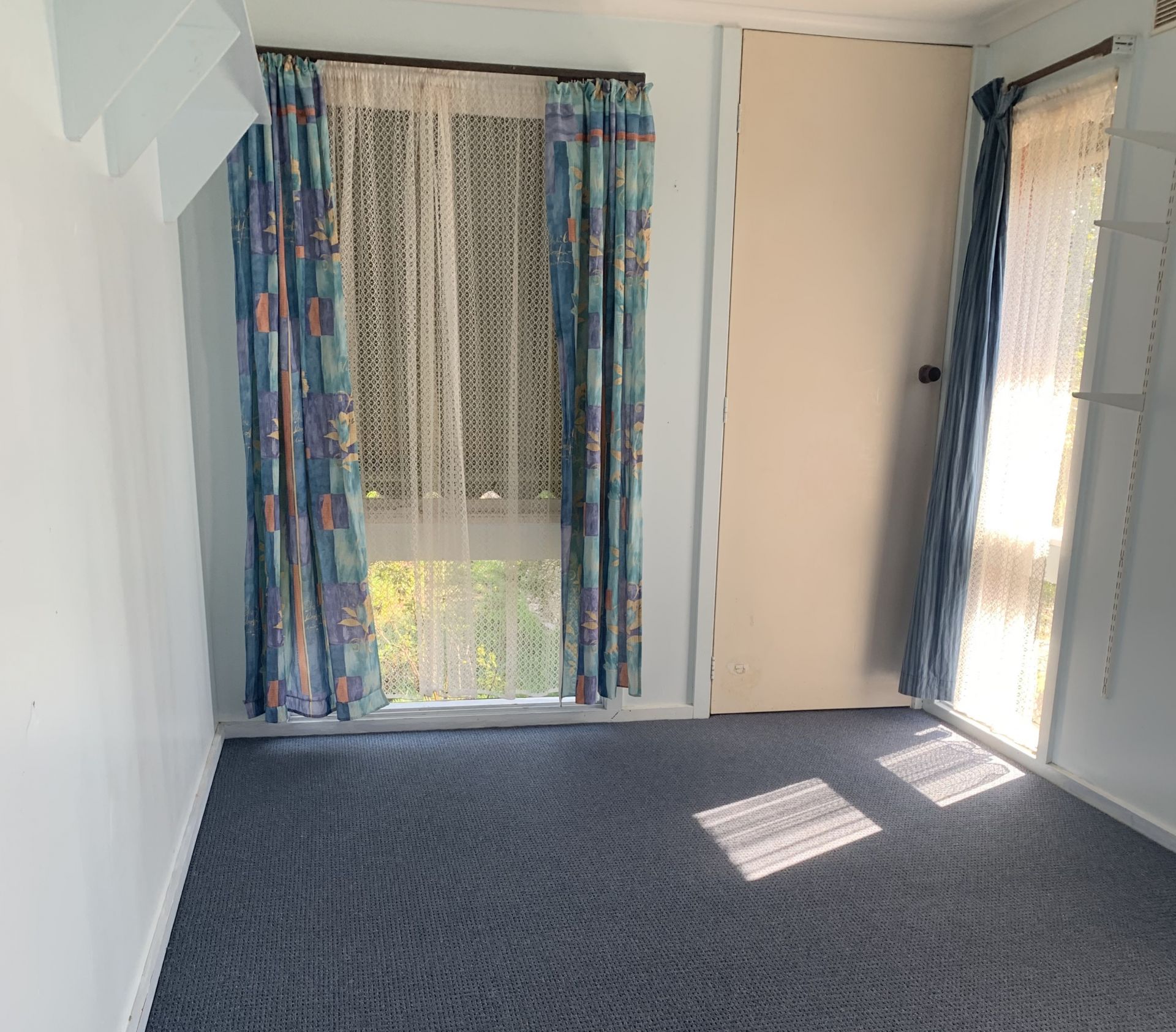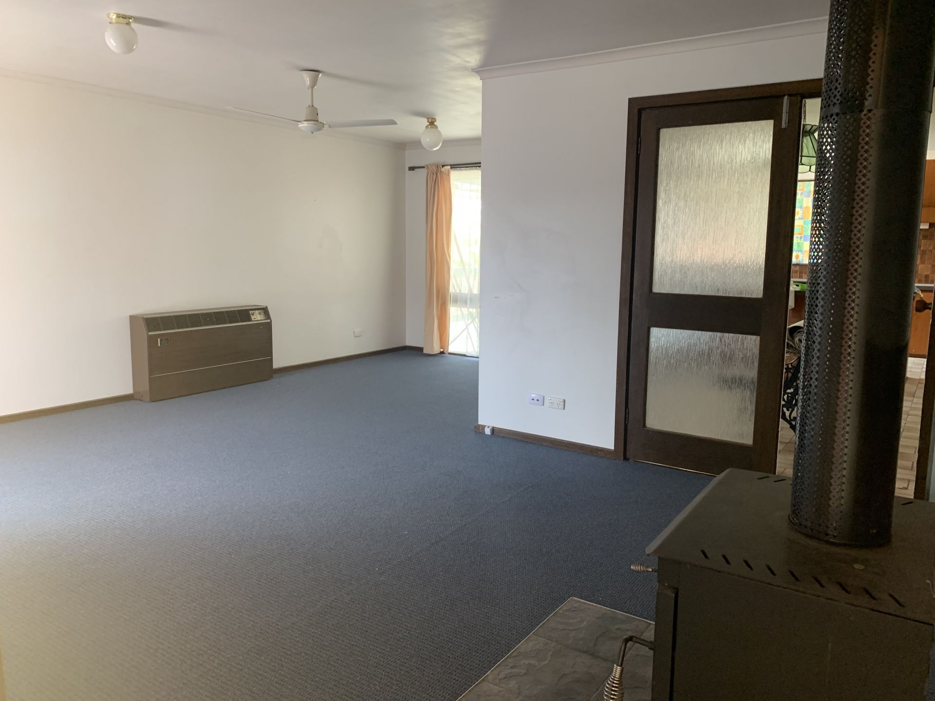 Living area has new carpet and has a conara and box air conditioner.