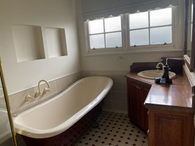 Bathroom has a claw foot bath & shower plus plenty of space.