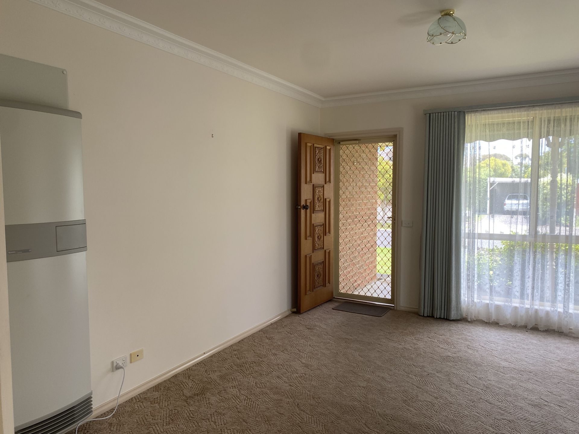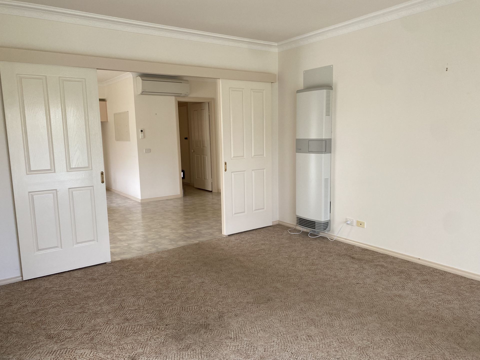 Loungeroom has carpet, gas heater is a great size