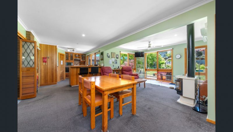 Two spacious living areas with split system, ceiling fans and wood heater.