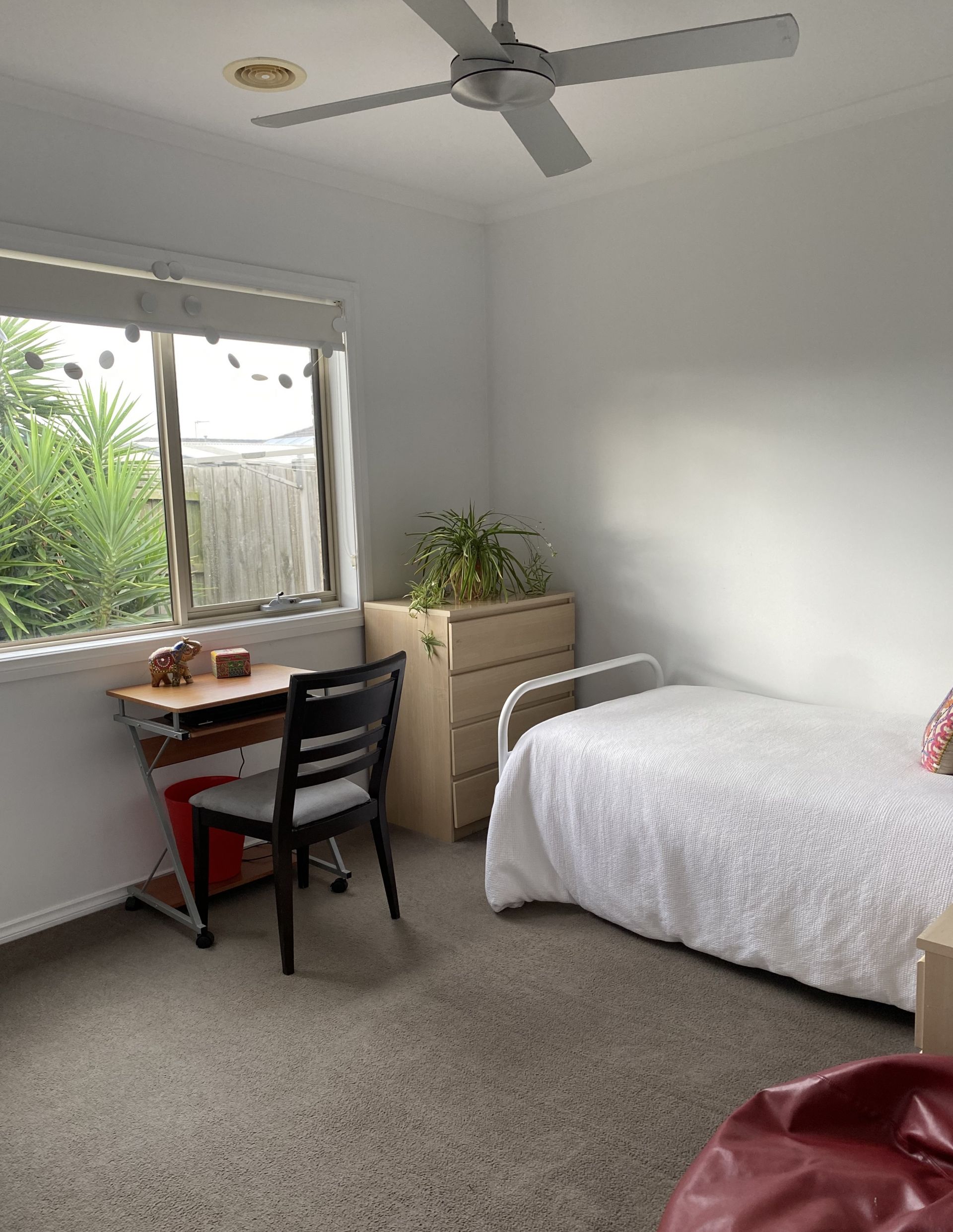 Bedroom 2 & 3 is carpeted with ceiling fan