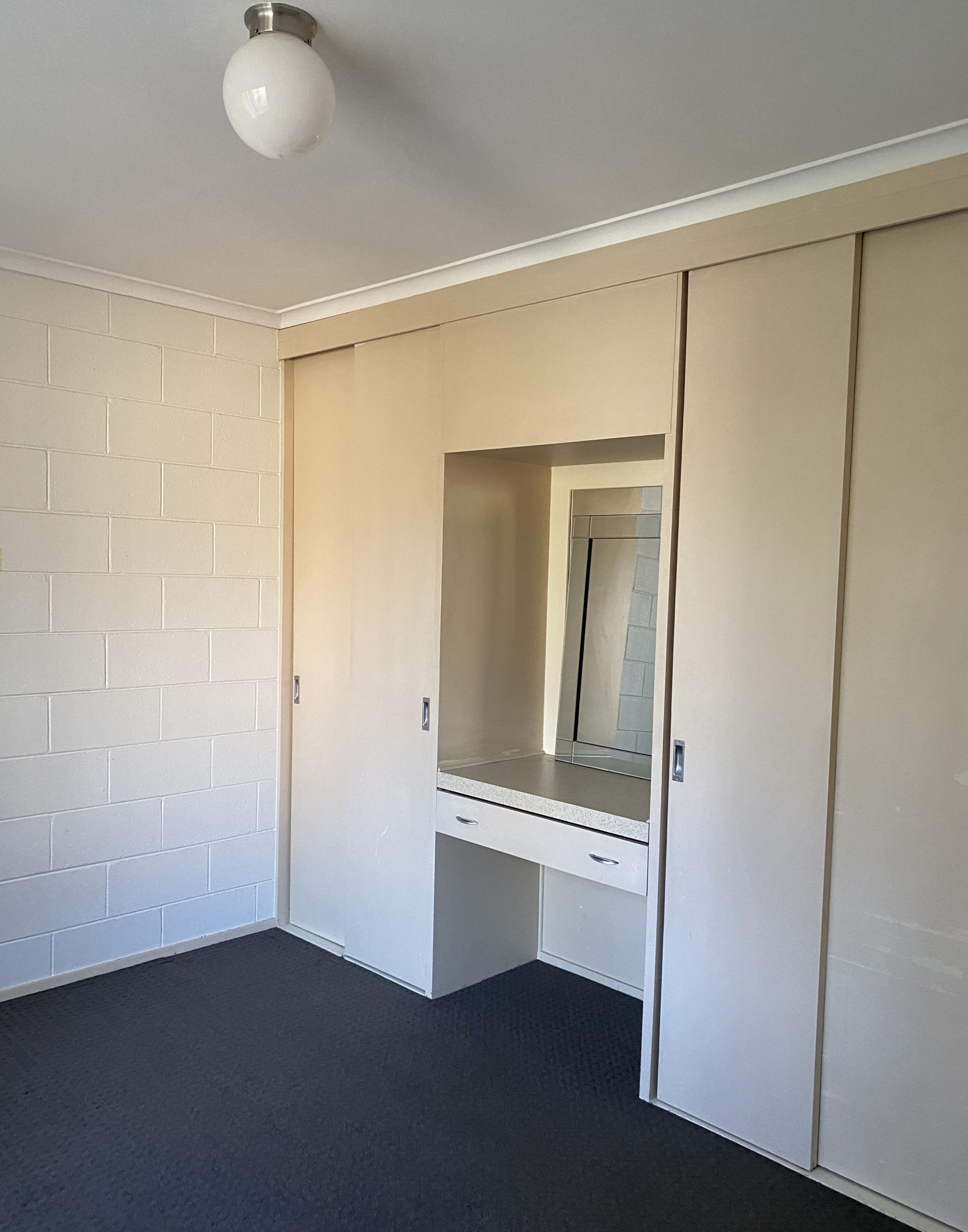 This unit has a reverse cycle air con, two bedrooms with BIR.