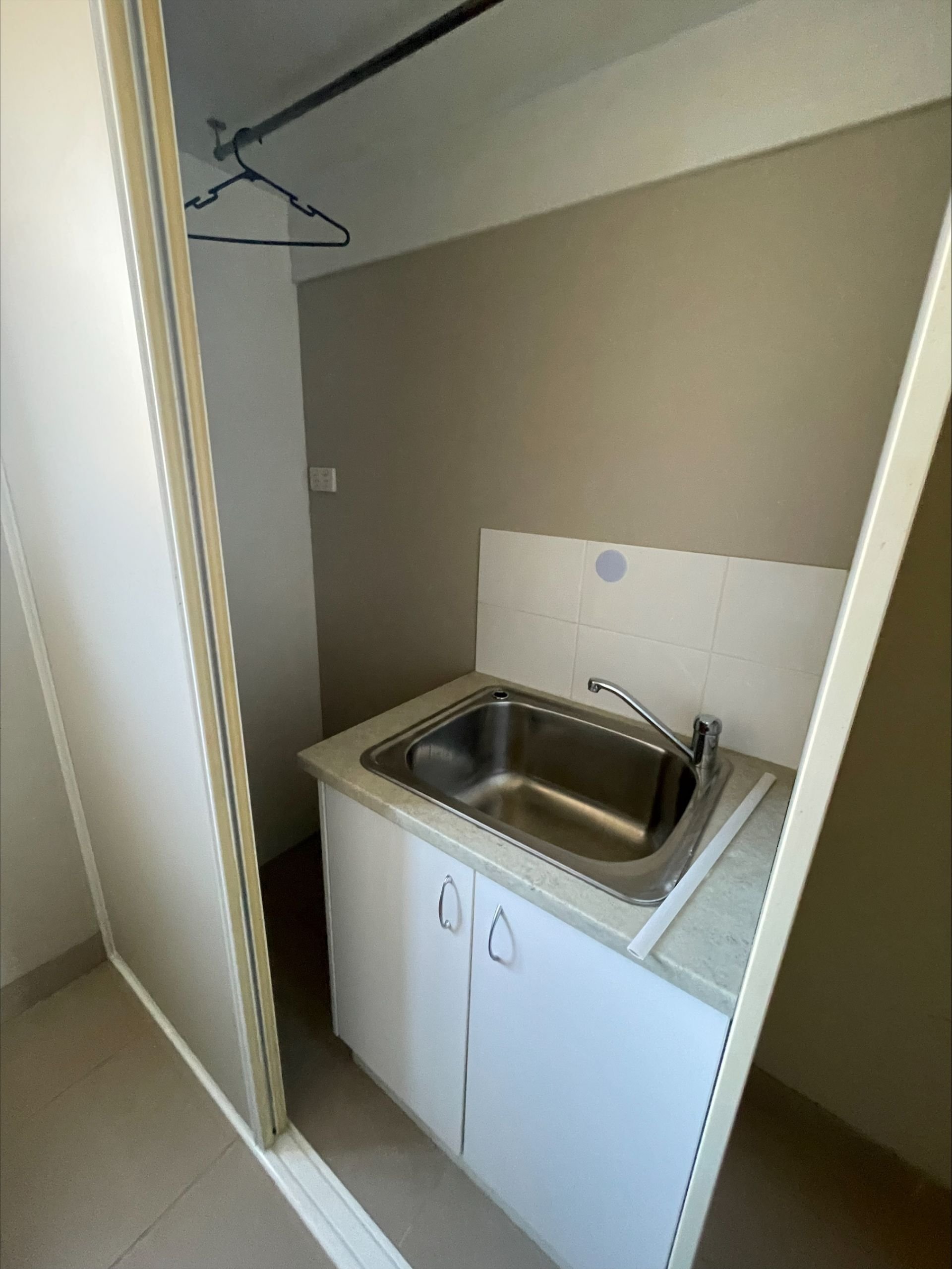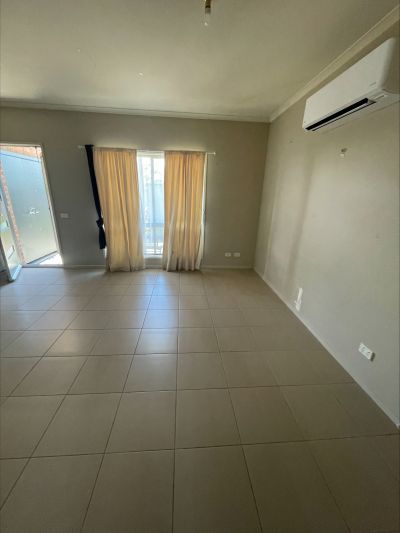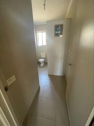 Kitchen is tiled with electric cook tops and oven with plenty of bench space and storage.