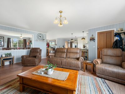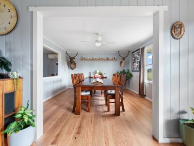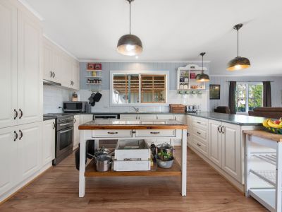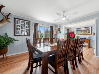 - The large formal dining room is perfect for hosting gatherings, and the open plan living and kitchen area features wood fire heating and an inverter split system for year-round comfort.