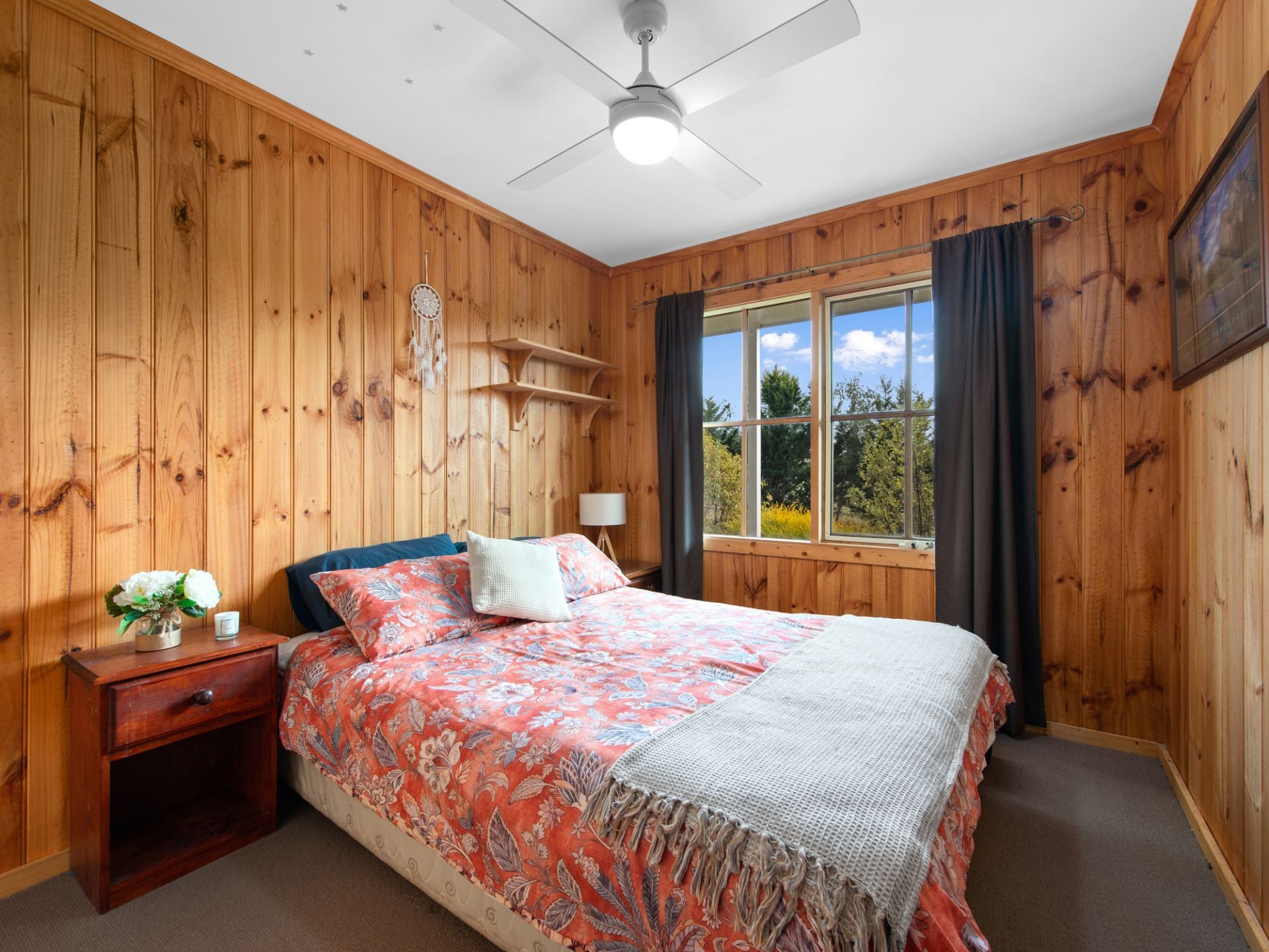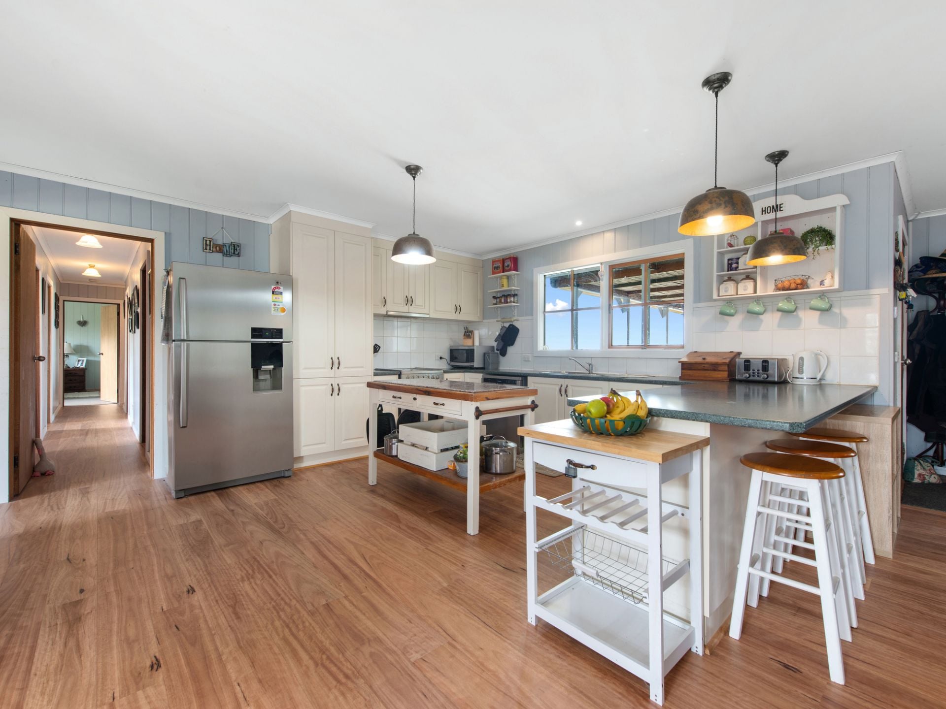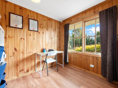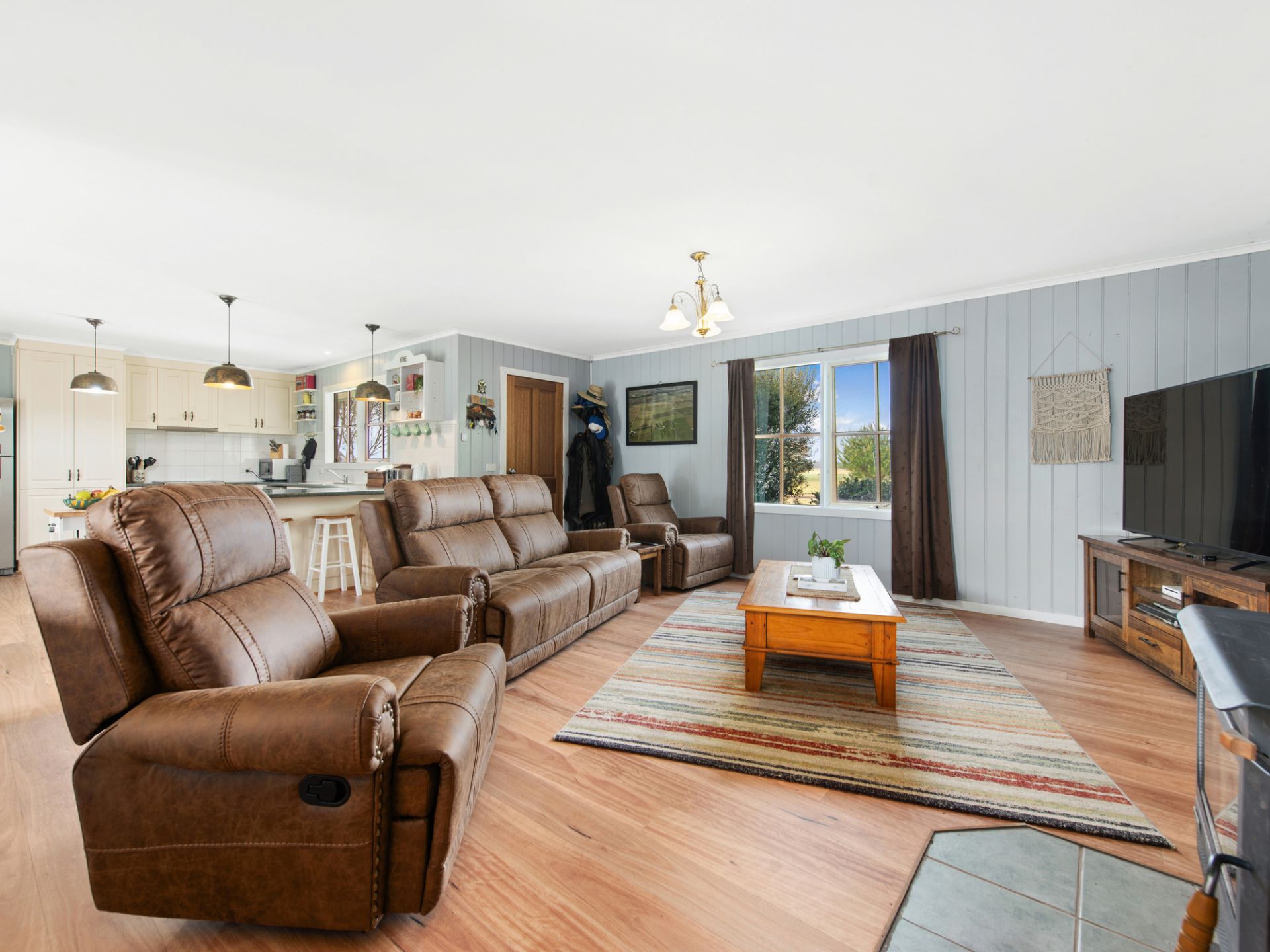 - Open-plan living and kitchen area with wood fire heating and inverter split system for year-round comfort.