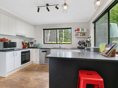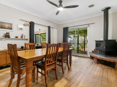 Designed for comfort and connection, the heart of the home features a well-appointed kitchen with electric cooking and dishwasher, flowing seamlessly into an adjoining living area warmed by a cosy wood fire. A separate family room provide plenty of room for everyone, enhanced by timber floors, ceiling fans throughout and split-system air conditioning for year-round comfort.