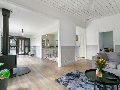 - Open plan living complete with a wood fire and ceiling fans for year-round