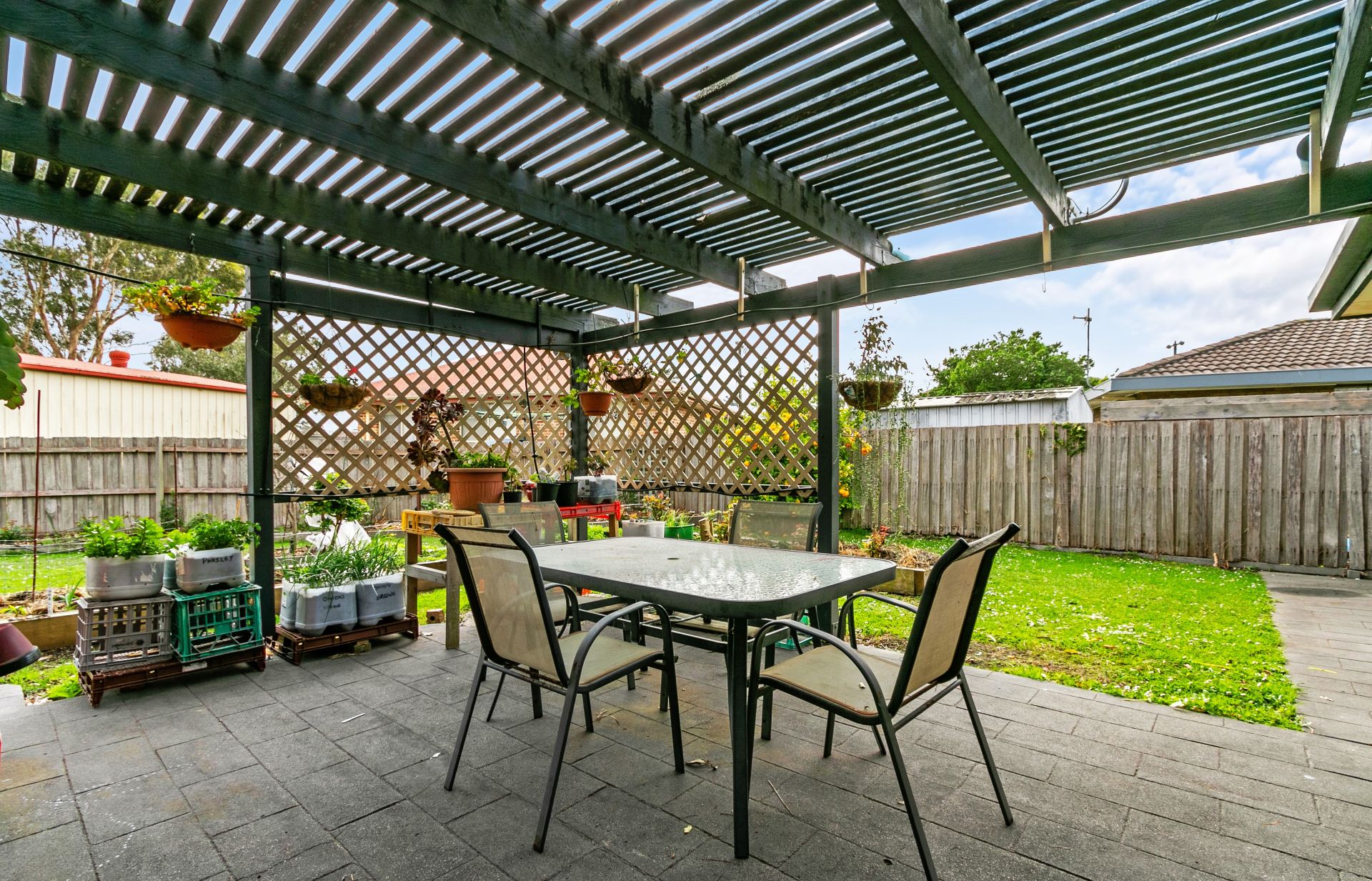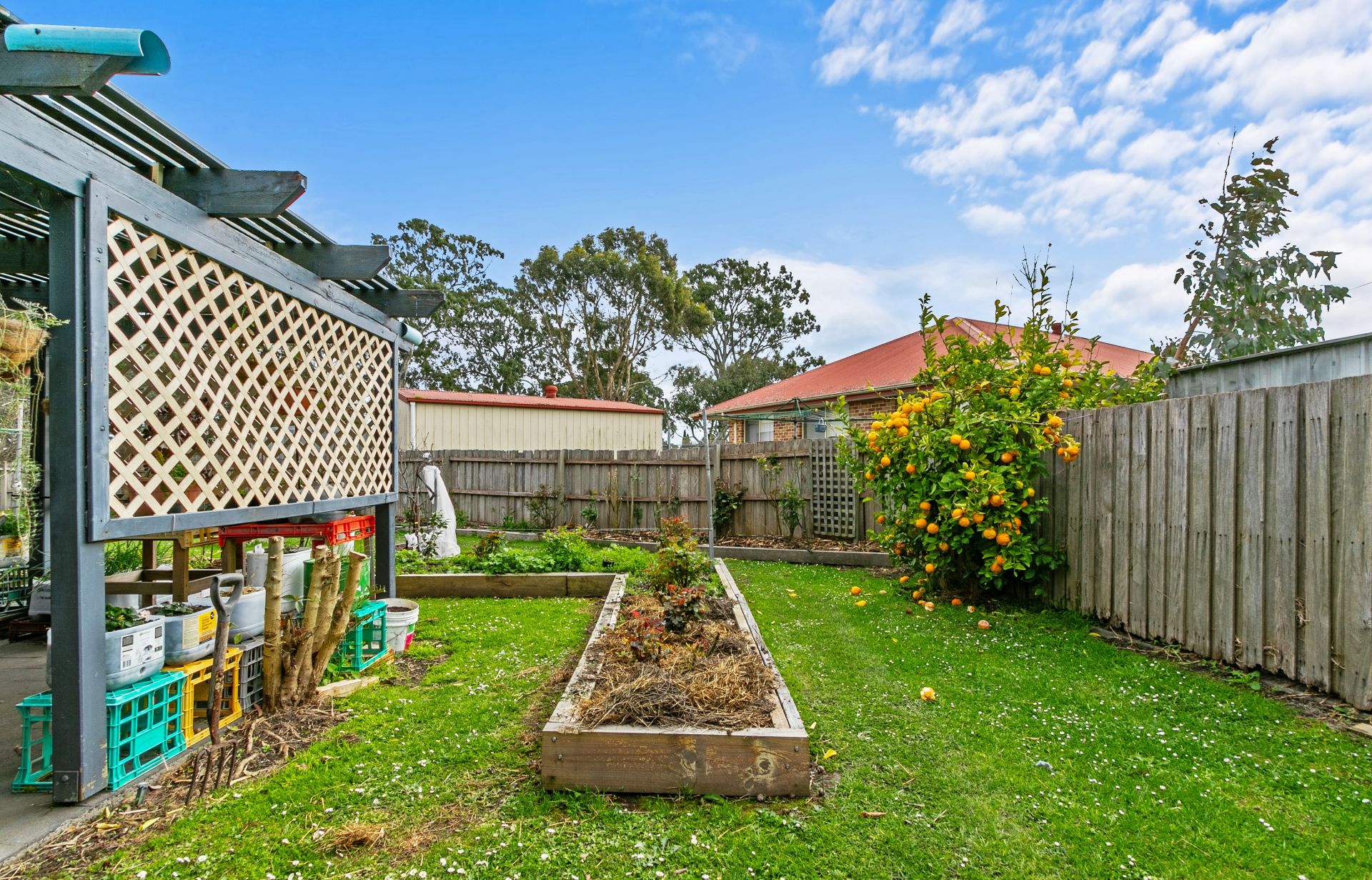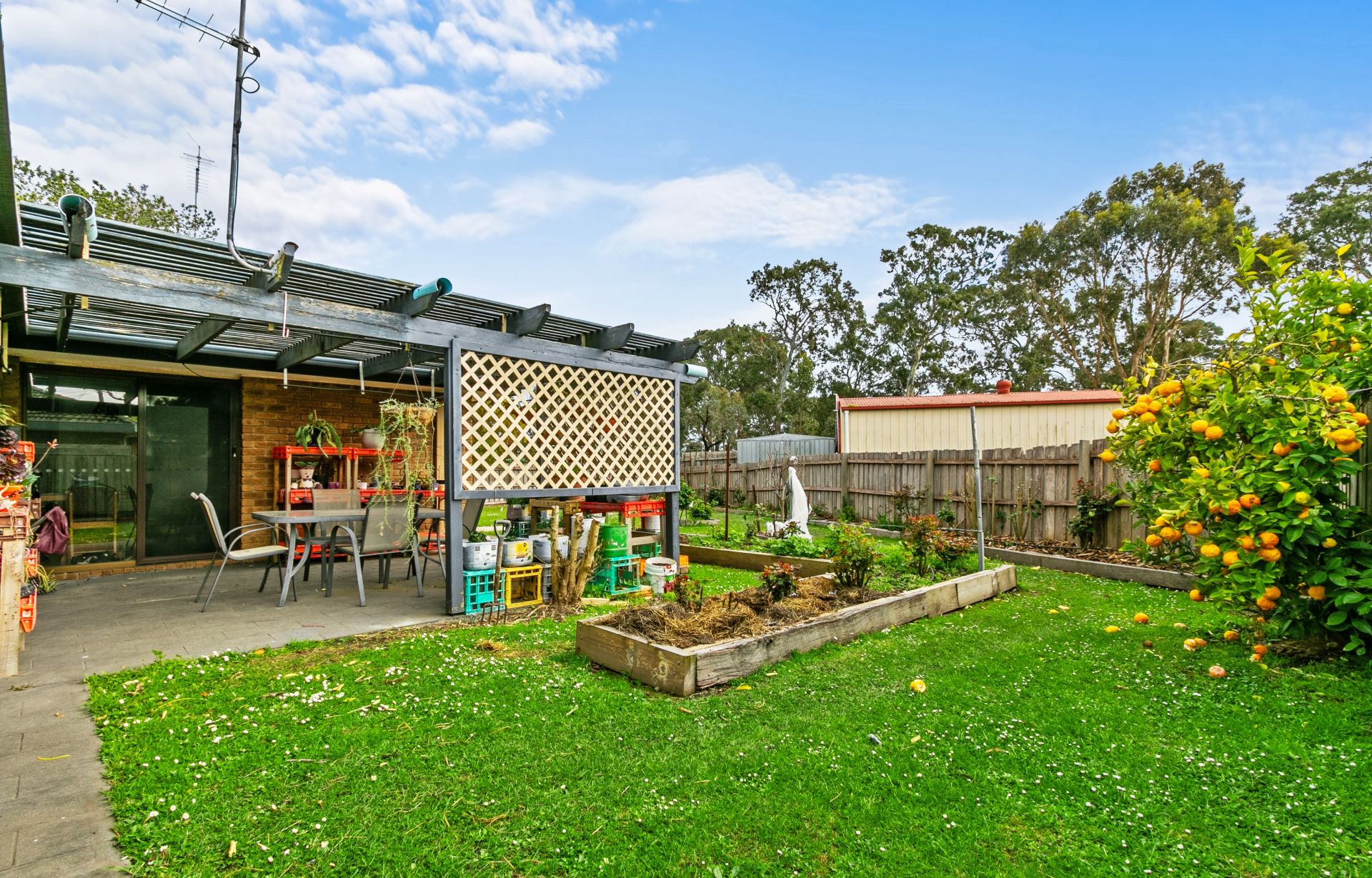 Well-established backyard perfect for relaxation or potential enhancements.