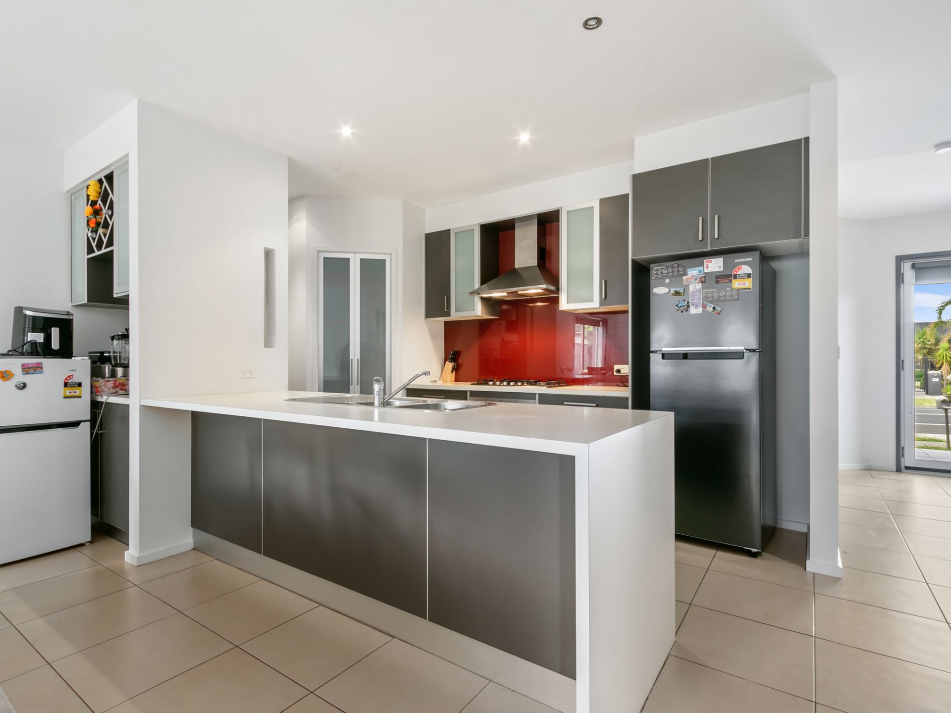 Gourmet kitchen with a 900mm gas stove, dishwasher, corner pantry, and breakfast bar.