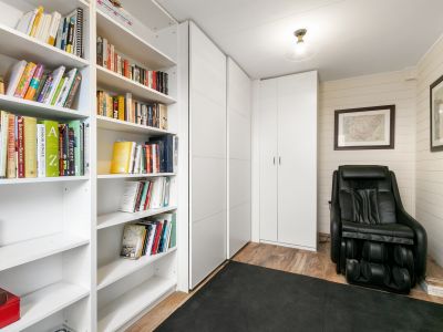 The storage/therapy space is only limited by your imagination. With built in book shelves & ample storage, you will make good use of this space.