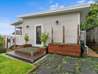 The house is beautifully renovated into a modern & inviting space. The living area is built for book and trinket lovers alike. The main bedroom has built in robes and ceiling fan.