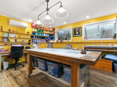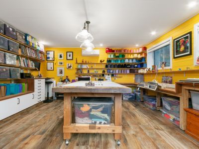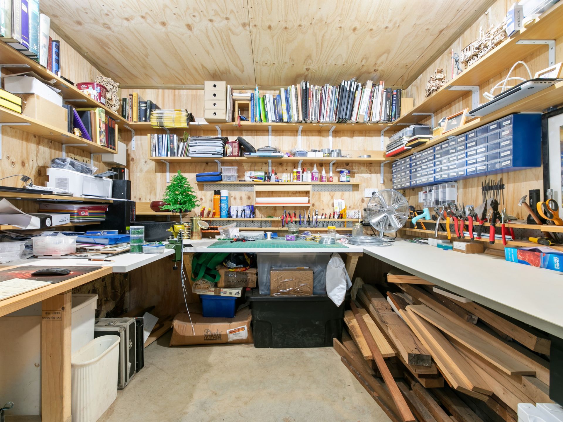 The workshop is the tinker paradise with three areas to create and potter – including a dust free room.