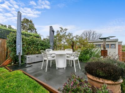 Fruit trees, herb pots (included), pond (with resident turtle), water tank, garden shed, storage shed, garden watering system (controlled with App) & some double glazed windows all add to this wonderful property.